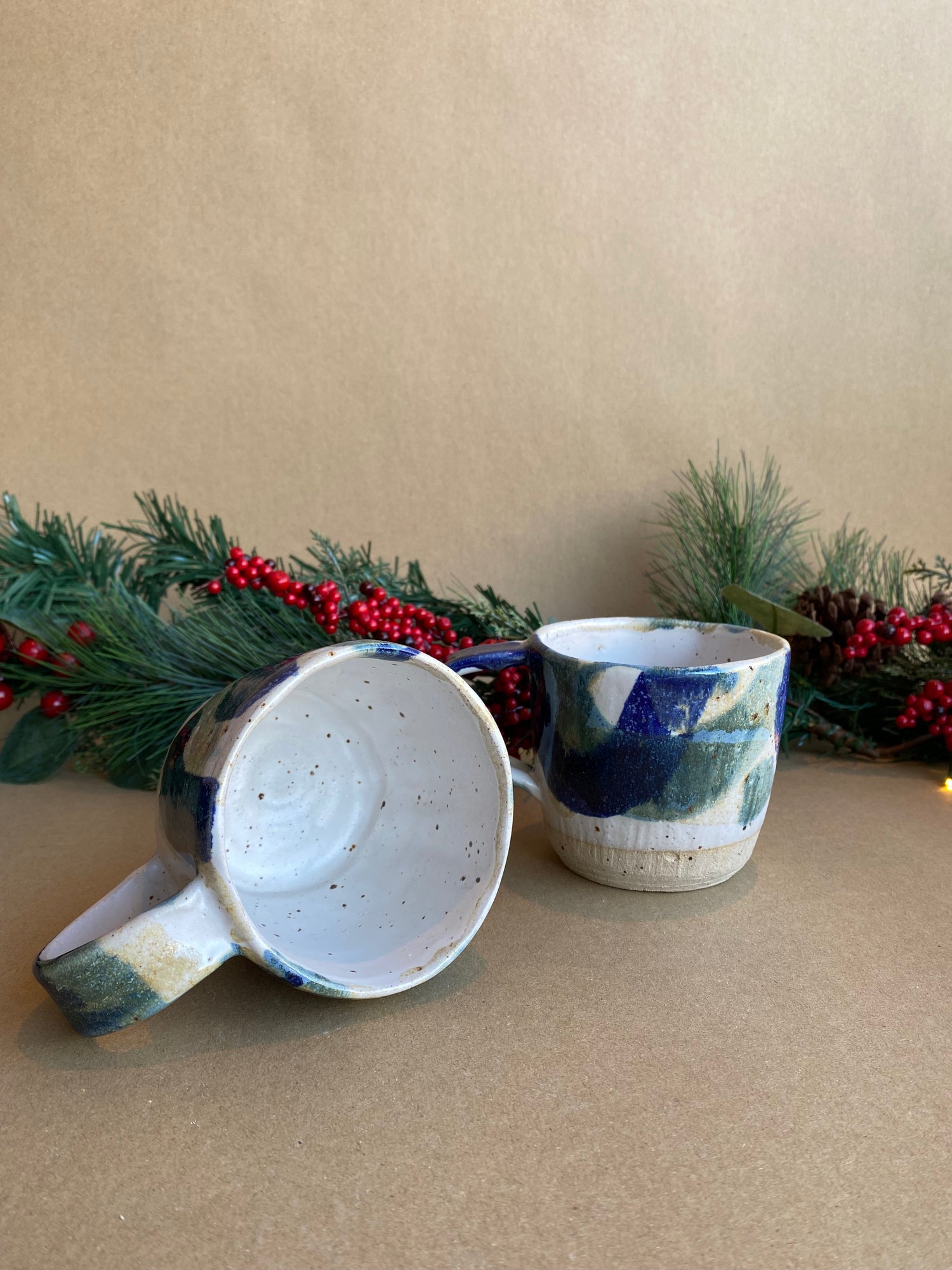 Glazed in flowing blue and green colours, using food safe and lead free glazes. Each mug is unique and will add a touch of handmade joy to your home.